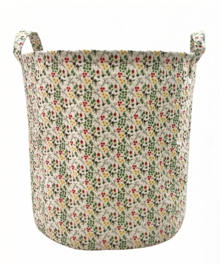Floral Print Round Laundry Basket with Durable Handles